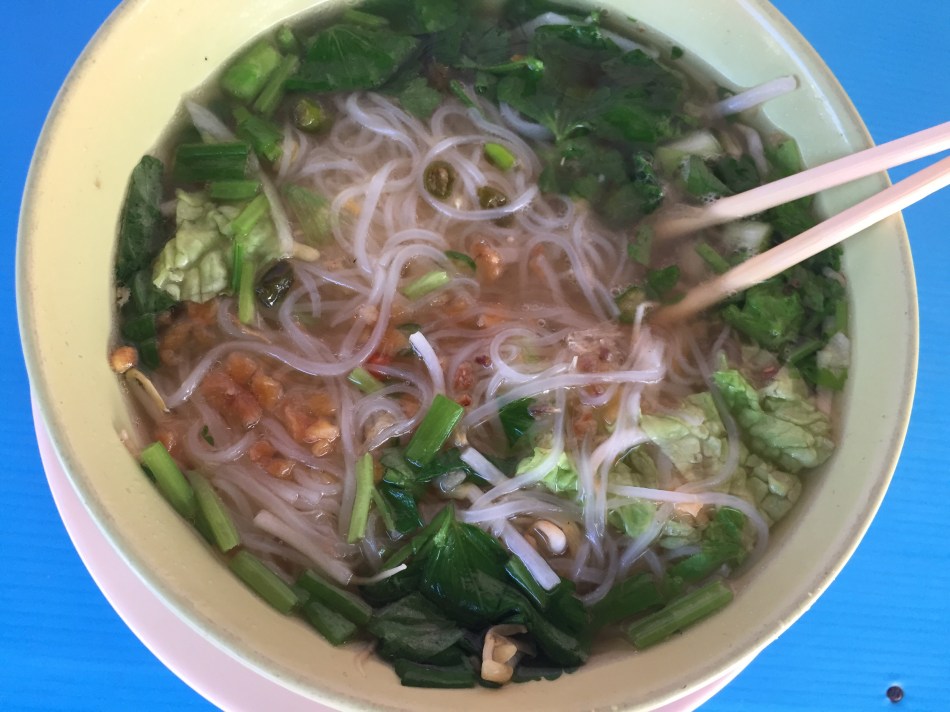 Alexia always talks about practicing awareness when eating. Movies frequently reference love as a secret ingredient to a recipe. Ha- so it’s reassuring when yoi sit down at a street stall, put down your heavy pack, enjoy the shade, and hear humming as your fresh veggie noodle soup is being made. Back home, my favorite dish was Pho. I would spend easily $10 each time I ate it. Here in Thailand, I am absolutely spoiled with noodle soup. I’ve been eating it daily, and I couldn’t be more satisfied.